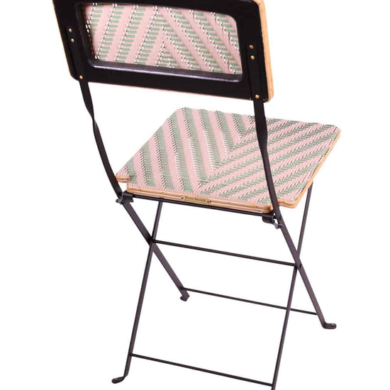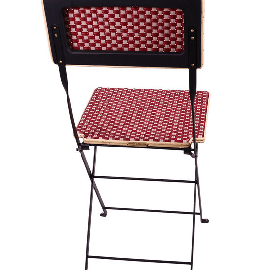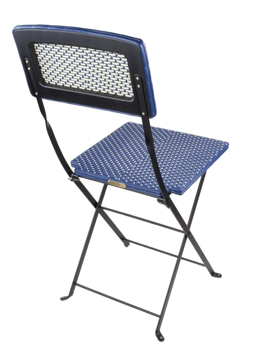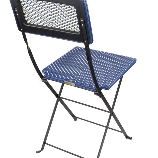 Folding chair, steel frame, custom weaving patterns, choice of jacquards and colors, simple, comfortable, elegant, discreet, indestructible, perfectly outdoor, easy to maintain, compact, easy to store, ideal for establishments, kitchens, dining rooms, terraces, gardens.